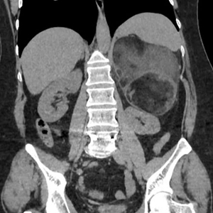 Agosto 2025. Sanatorio de la Cañada Pte femenino de 52 años, Mc: dolor abdominal difuso, App: hta, Mh: Losartan, A qx: osteosíntesis lumbar.